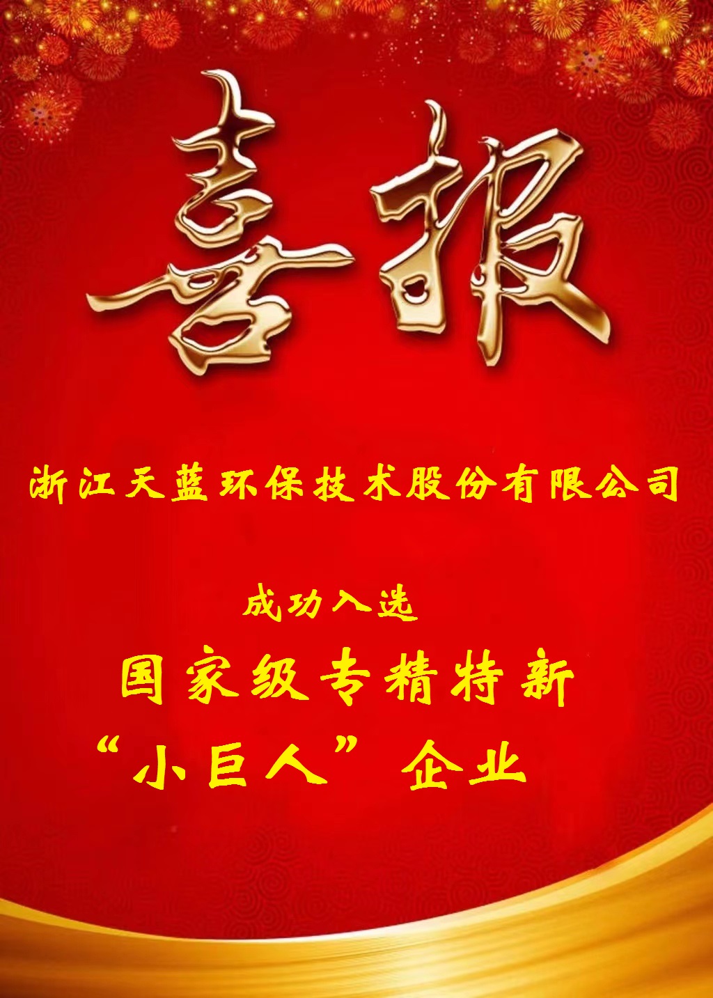 近日,浙江省經(jīng)濟和信息化廳發(fā)布了《關(guān)于浙江省第四批專精特新“小巨人”企業(yè)和第一批專精特新“小巨人”復(fù)核通過企業(yè)名單的公示》,天藍(lán)環(huán)保憑借在大氣污染治理領(lǐng)域的技術(shù)創(chuàng)新綜合實力和市場占有率,成功入選國家級專精特新“小巨人”企業(yè)名單。